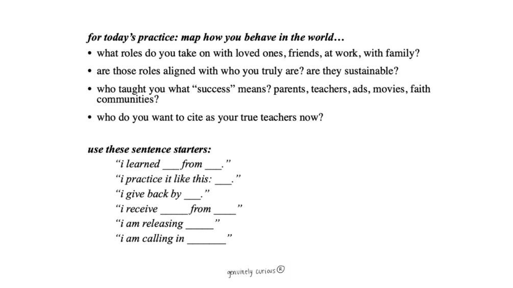- guided reflections to uncover cultural and personal narratives that no longer serve you